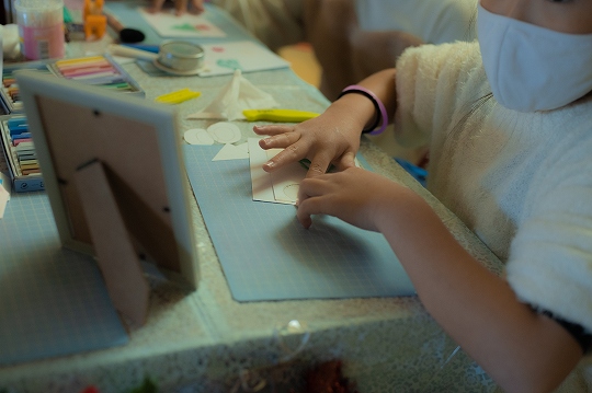 ハンドメードマーケットのワークショップで、真剣な表情で作った作品を大切に持って歩く子♪